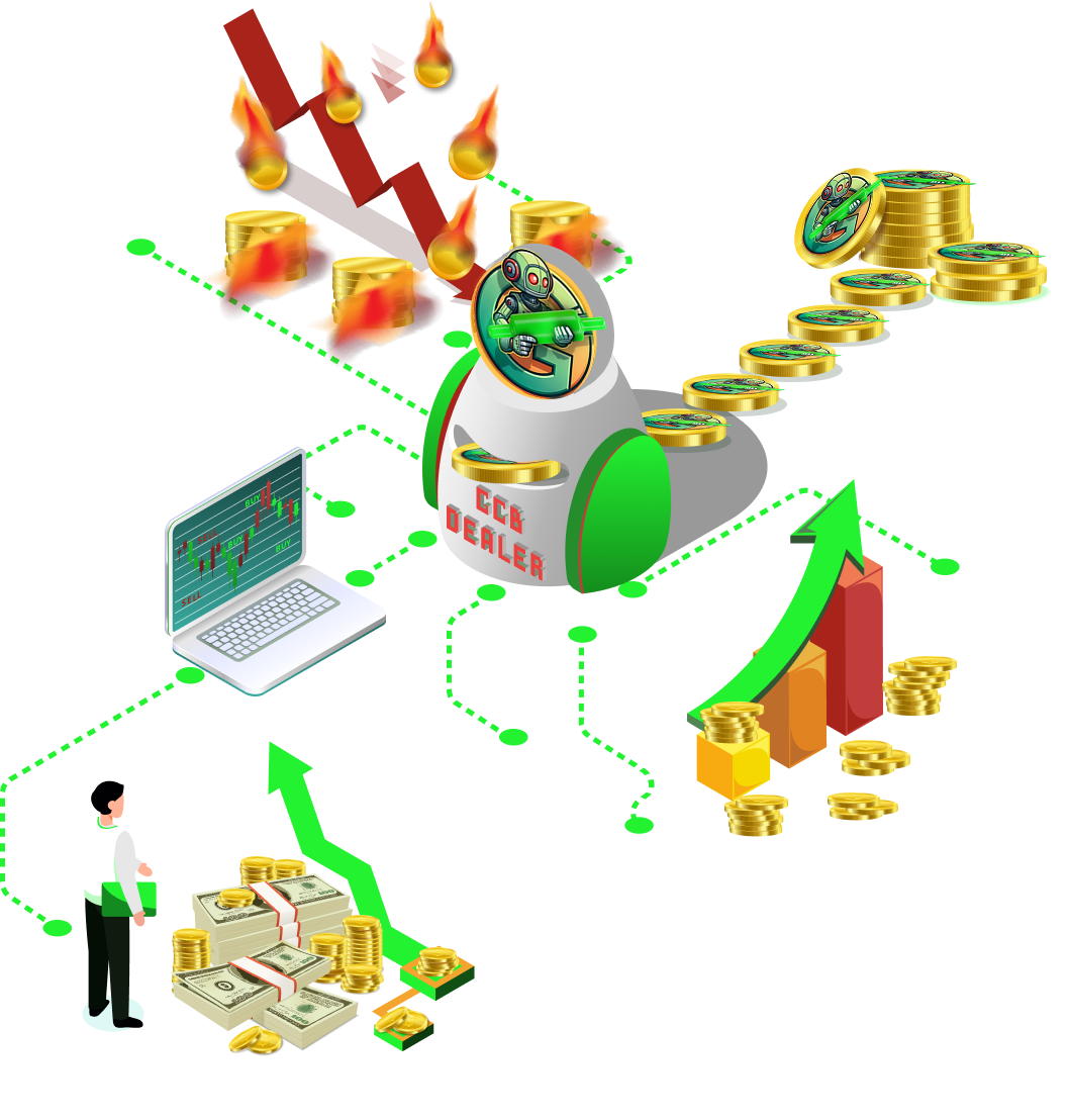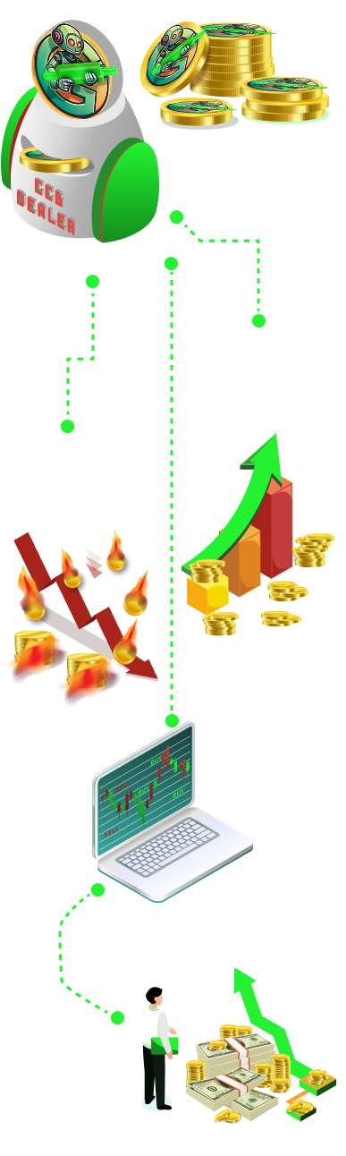 When tokens are purchased to use the GCB Dealer it’s automatically creating a steady